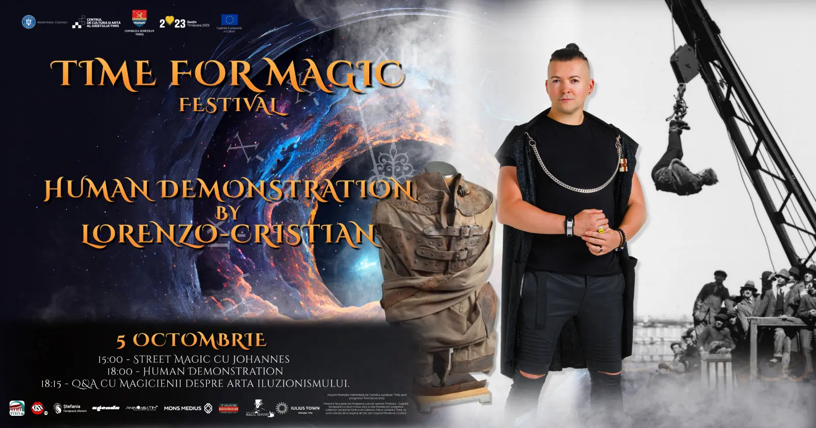 Timișoara devine anul acesta Capitala Magiei, pentru că aici va avea loc Time For Magic- Festivalul Internațional de Magie, ediția a II-a, în perioada 3-7 octombrie 2023 cu nu mai puțin de 5 evenimente.